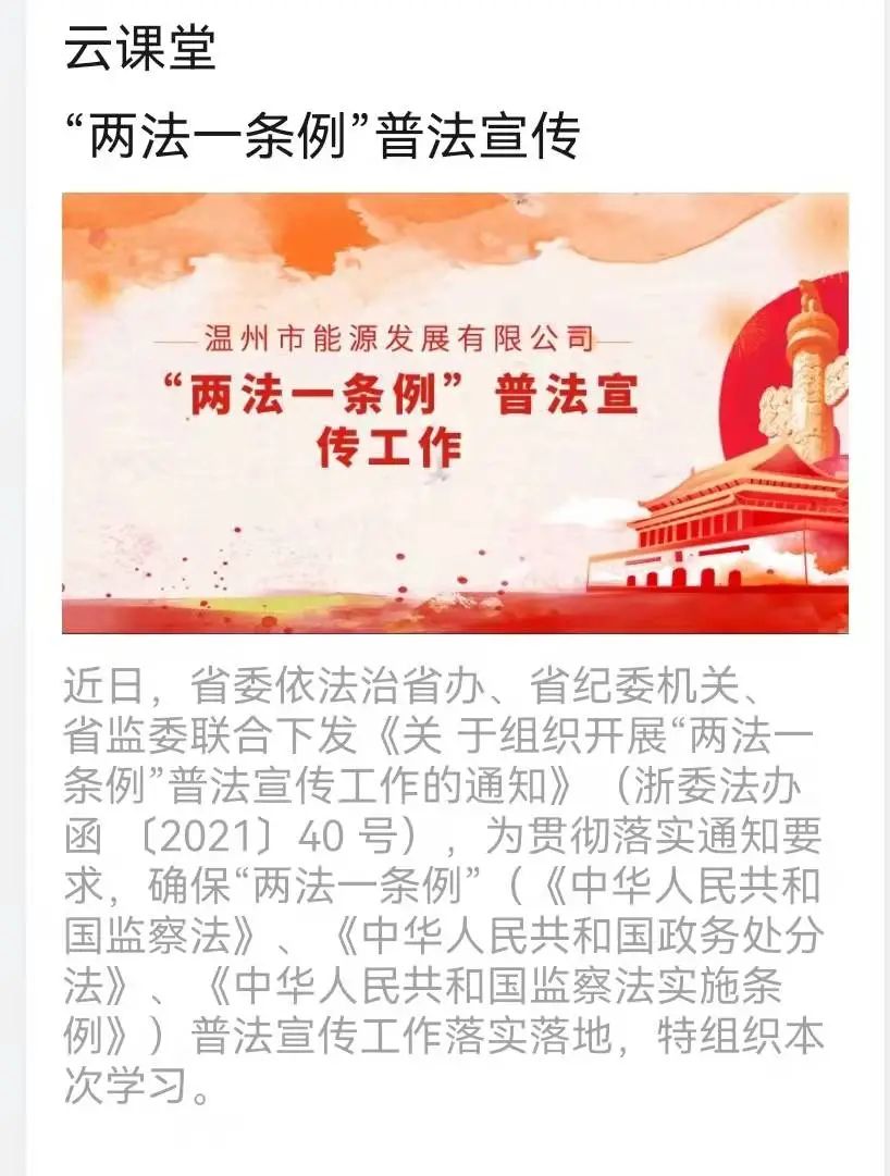 為深入學(xué)習(xí)貫徹習(xí)近平法治思想,貫徹落實(shí)習(xí)近平總書記關(guān)于全面從嚴(yán)治黨和監(jiān)察體制改革重要論述精神,根據(jù)省委依法治省辦、省紀(jì)委機(jī)關(guān)、省監(jiān)委聯(lián)合下發(fā)《關(guān)于組織開展“兩法一條例”普法宣傳工作的通知》的要求,能源公司近日開展了一系列線上線下的“兩法一條例”普法宣傳活動(dòng)。